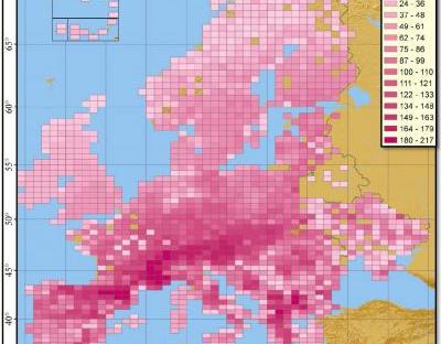 Butterfly Biodiversity in Europe. The areas of highest biodiversity are in the alps and the mediterranean.